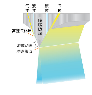 四流體噴嘴是在傳統(tǒng)的二流體噴嘴的基礎(chǔ)上疊加設(shè)計(jì)而成的,目前已經(jīng)可以進(jìn)行量產(chǎn)。四流體噴嘴擁有兩套氣液流道,也就是說可以單獨(dú)進(jìn)行干燥氣體供給。在這之上,四流體噴嘴擁有可以將物料二次微粒化的結(jié)構(gòu)